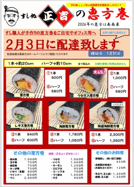 すし職人が手作りの恵方巻をご自宅等へ
